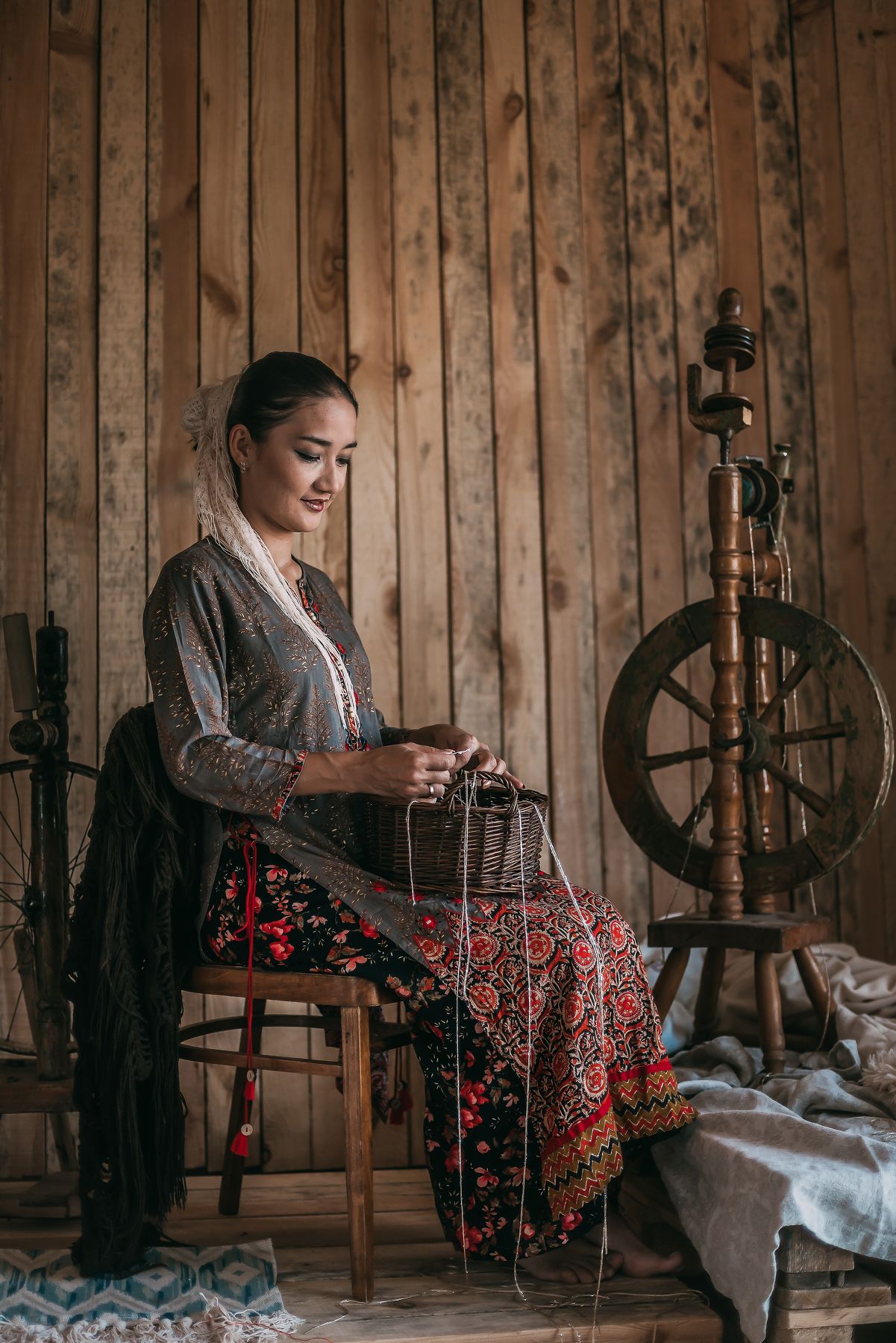Женщинапортретручная работаазиаткапрялкатрадиции