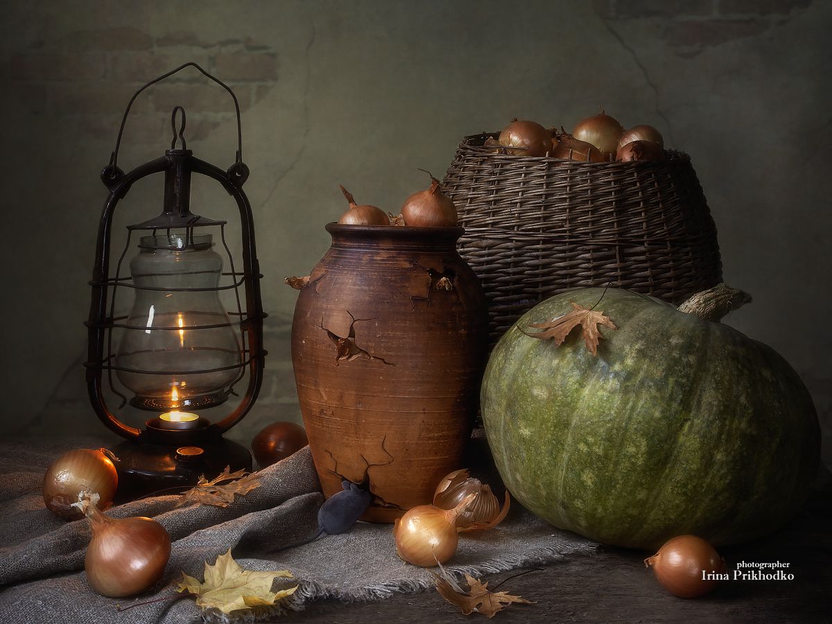 натюрморт, деревенский, лук, овощи, урожай, Приходько Ирина