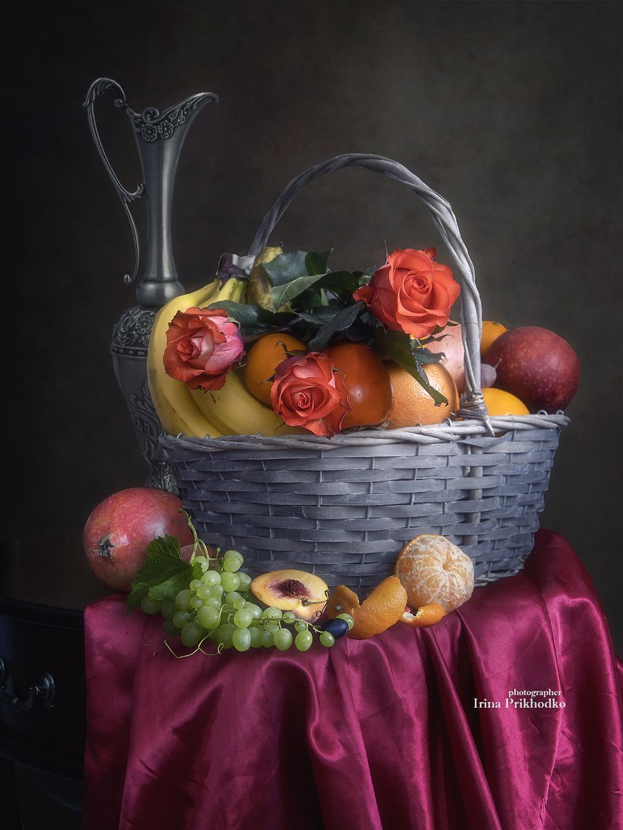 натюрморт, фрукты. розы, цветы, Приходько Ирина