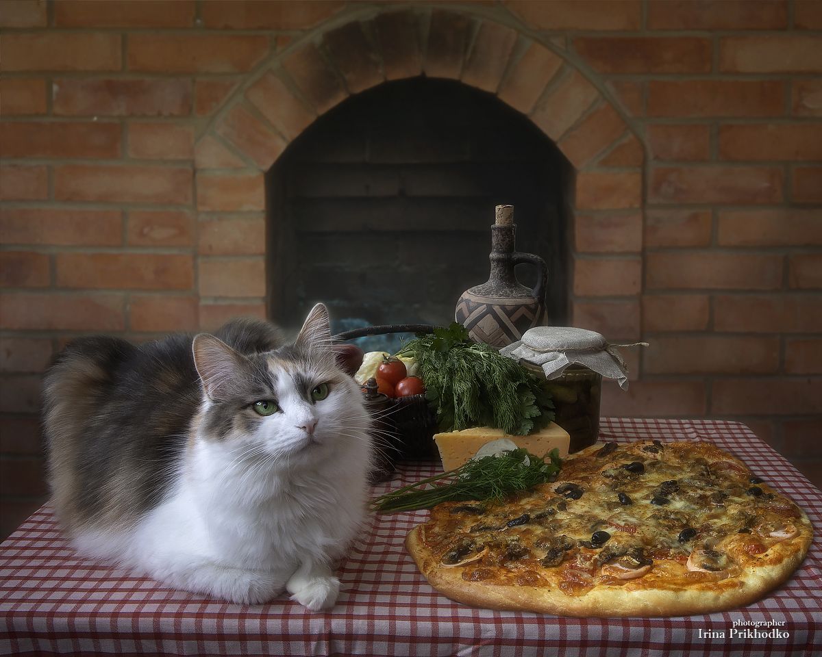 постановочное фотонатюрмортеда и напитки пиццадомашняя выпечкакухонный натюрморткошка