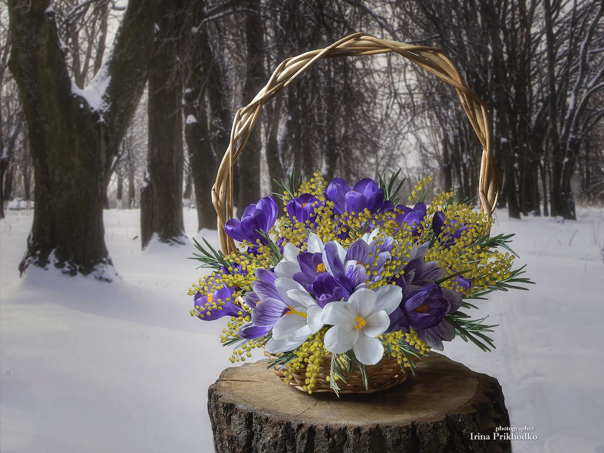 натюрморт, парк, пленэр, цветы, корзина первоцветов, Приходько Ирина