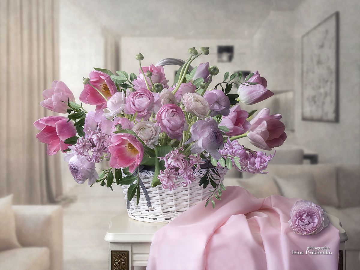 натюрморт, интерьер, букеты, цветы, весенние цветы, корзина цветов, Приходько Ирина
