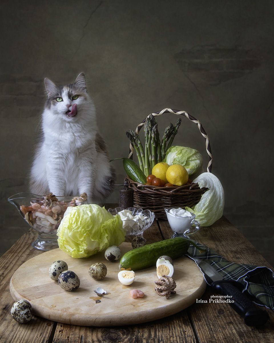 натюрморт, кухонный стол, домашние животные, кошка, овощи, Приходько Ирина
