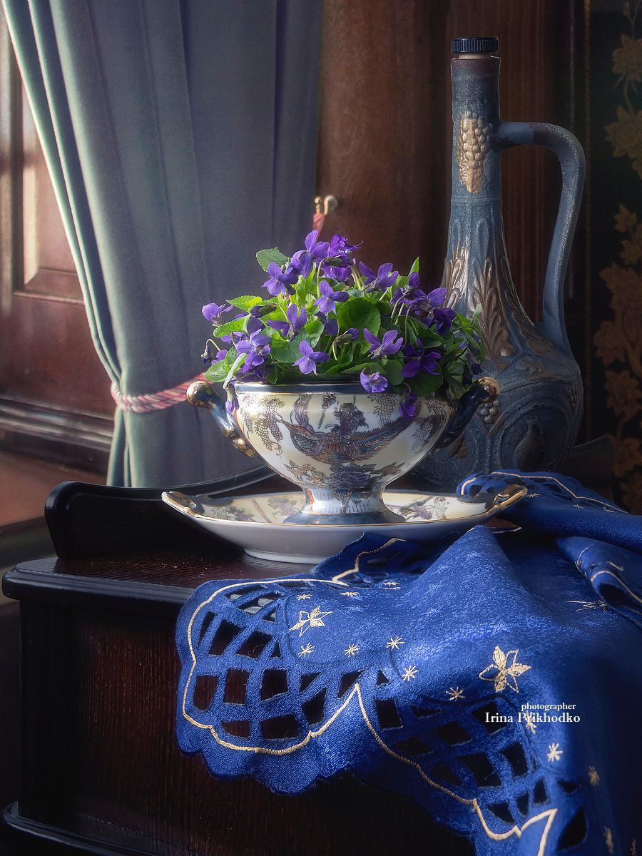 натюрморт, цветы, фиалки, интерьер, Приходько Ирина