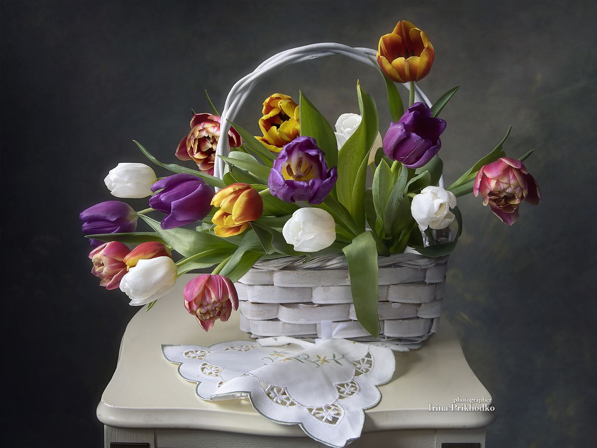 натюрморт, цветы, корзина цветов, тюльпаны, Приходько Ирина