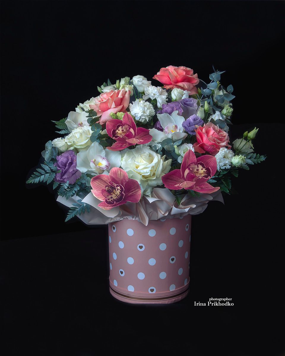 цветы, букеты, черный фон, Приходько Ирина