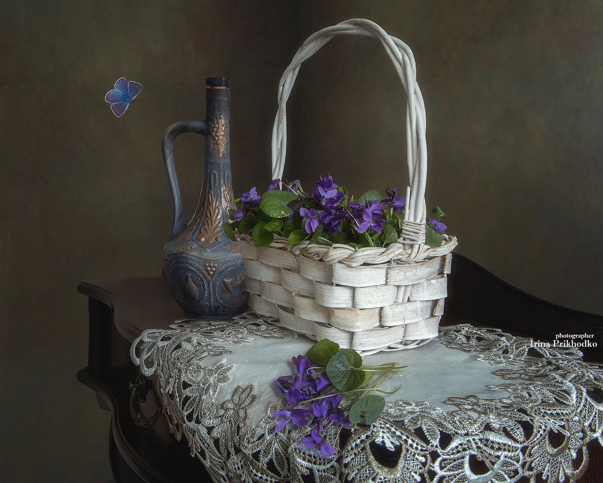натюрморт, цветы, весна, сезон, фиалки, Приходько Ирина