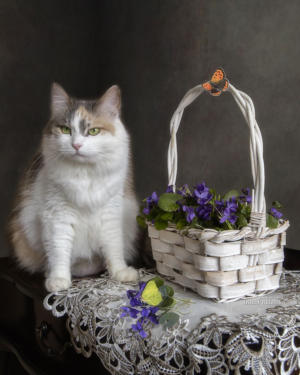 домашние животныекошкипитомцывеснацветыфиалки