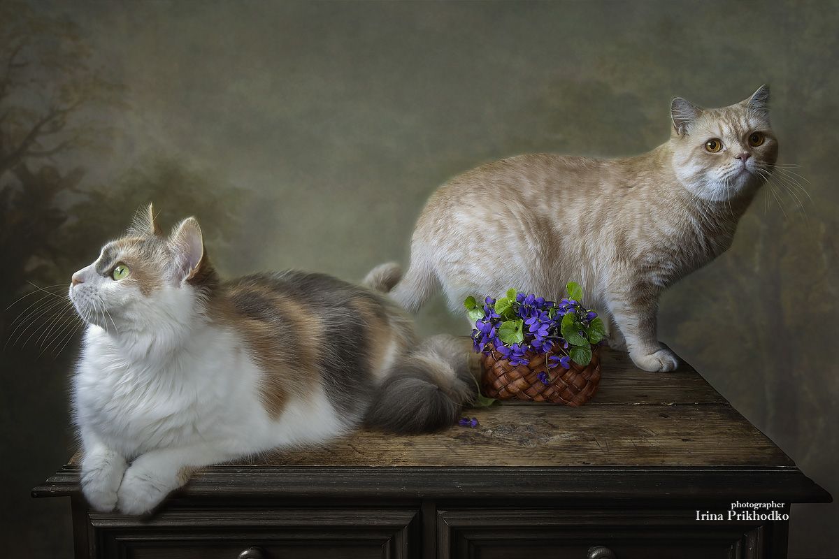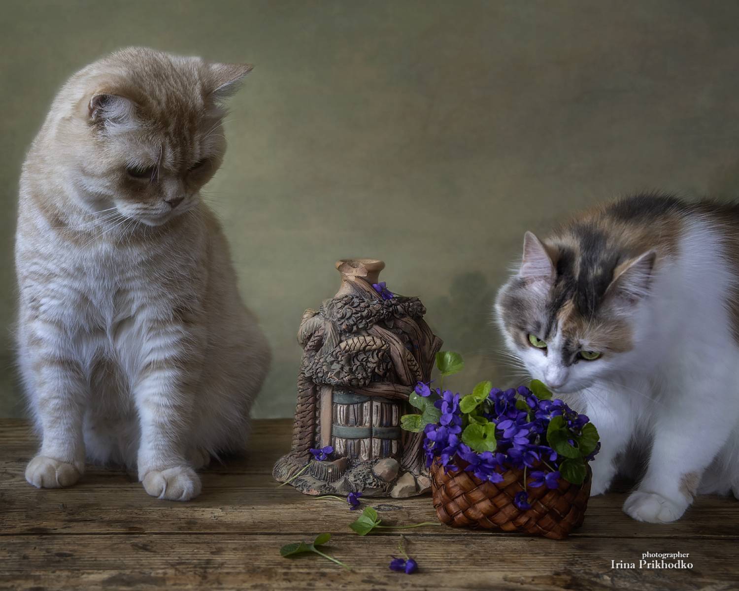 постановочное фотокошкизабавные историиотношенияфиалкивесна