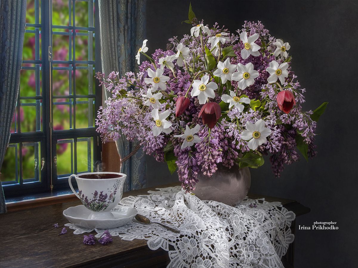 натюрморт, цветы, букеты, сирень, чаепитие, Приходько Ирина
