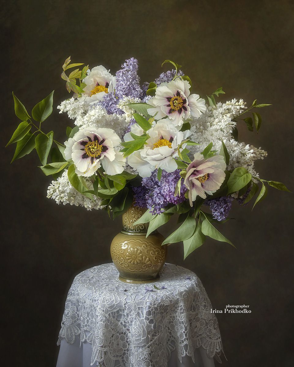 натюрморт, цветы, букеты, древовидные пионы, сирень, Приходько Ирина