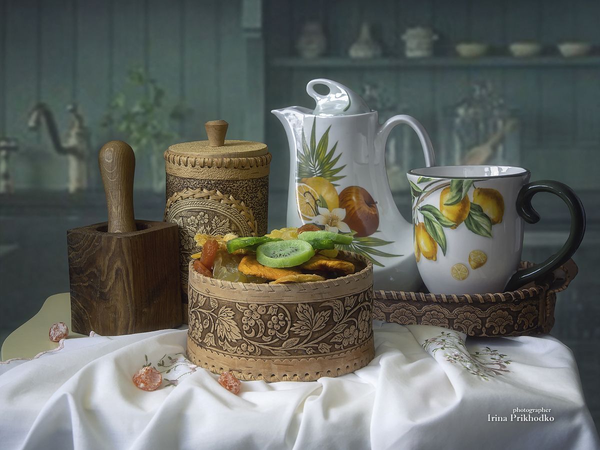 натюрморт, кухня, стол, посуда, сухофрукты, Приходько Ирина