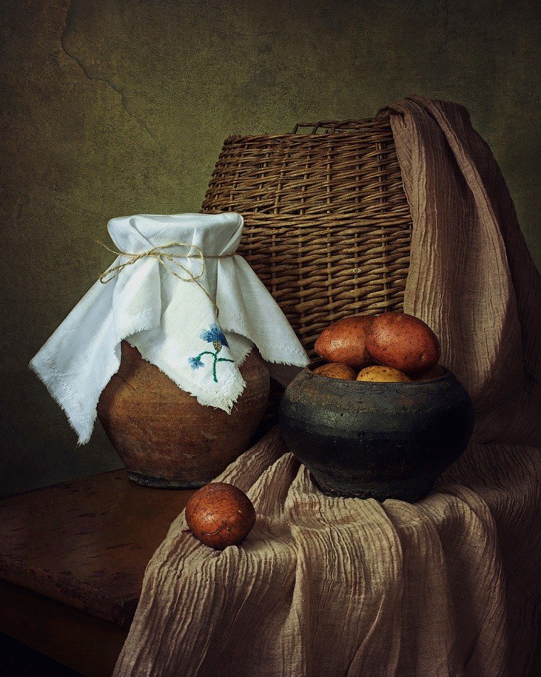 натюрморт, картошка, чугунок, крынка, корзина, Ирина Приходько