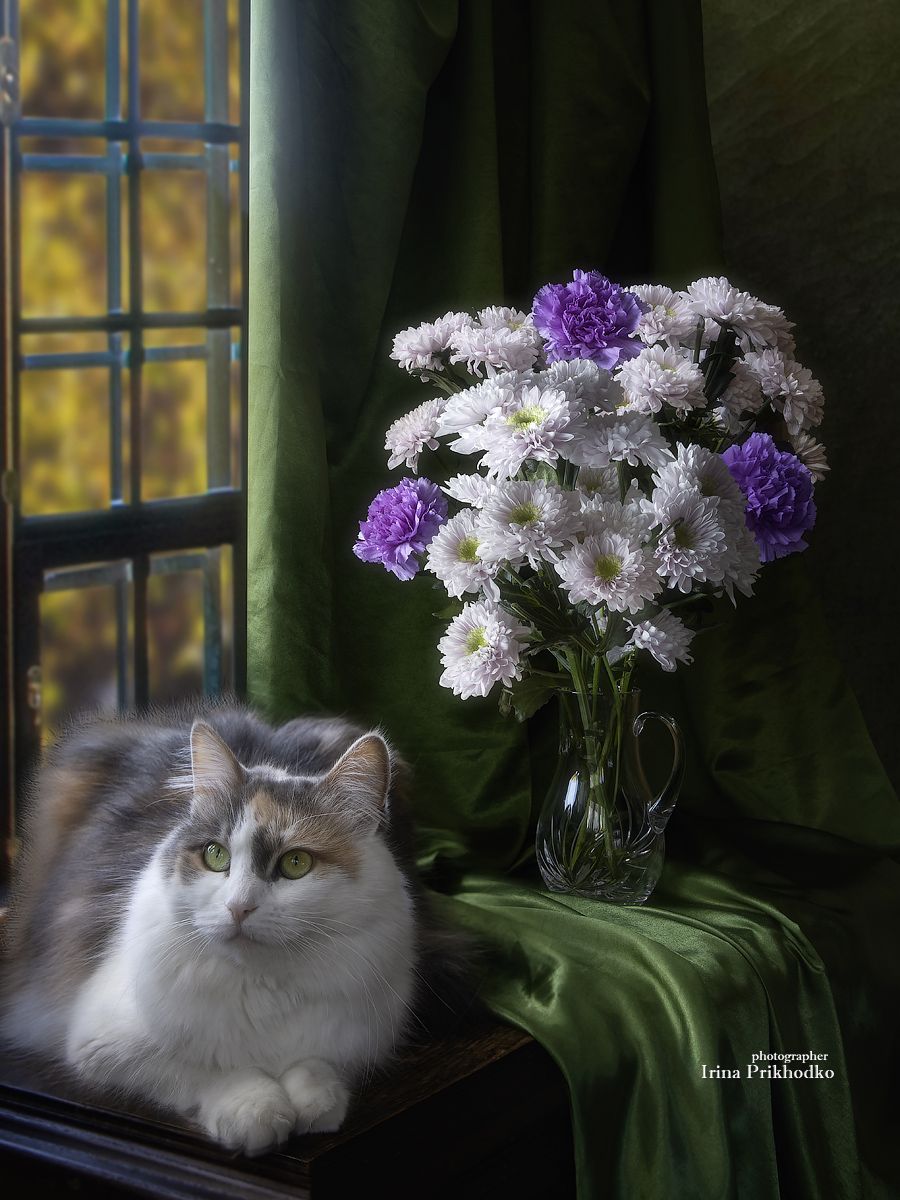 котопортрет, кошки, домашние животные, питомцы, интерьер, букет, Приходько Ирина