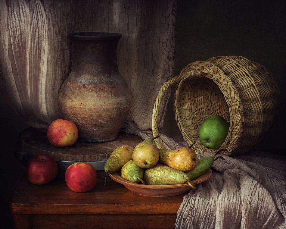 натюрморт, крынка, корзина, яблоки, груши, Ирина Приходько
