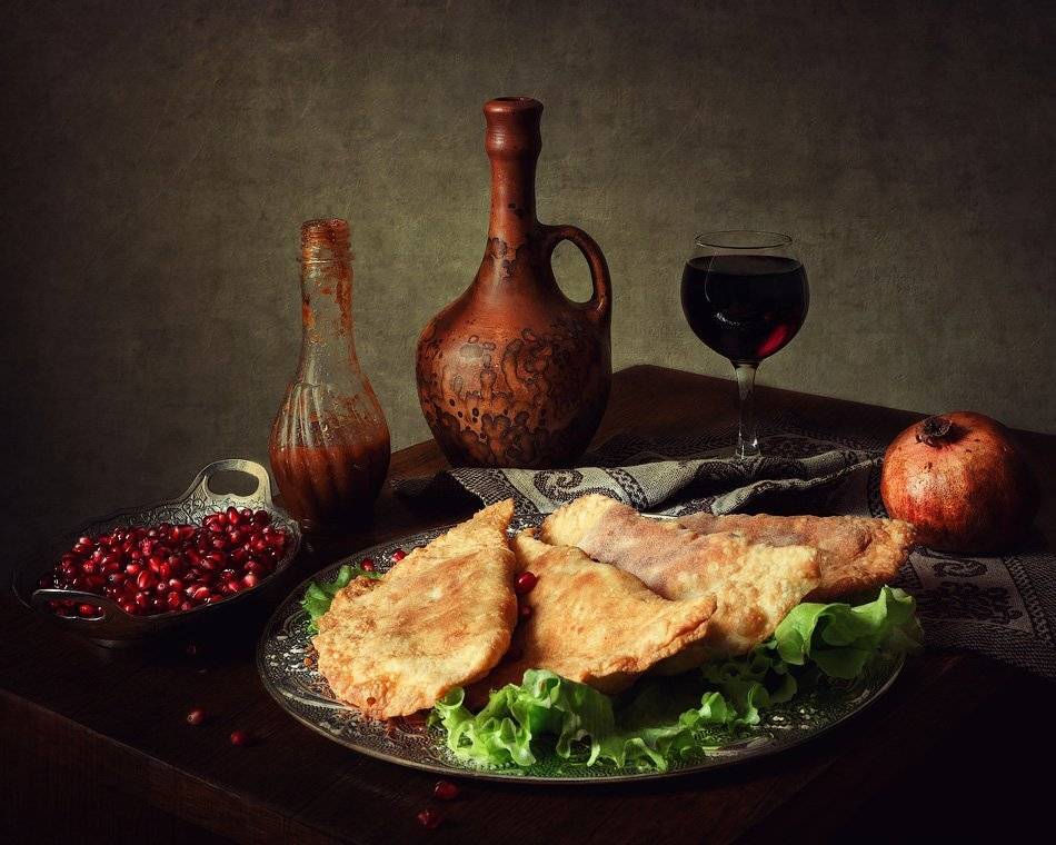 натюрмортчебурекисоусгранатыкувшинвинобокал