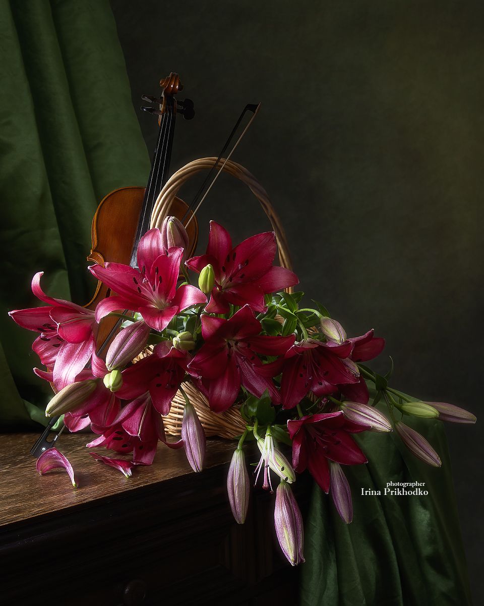 натюрморт, цветы, лилии, скрипка, Приходько Ирина