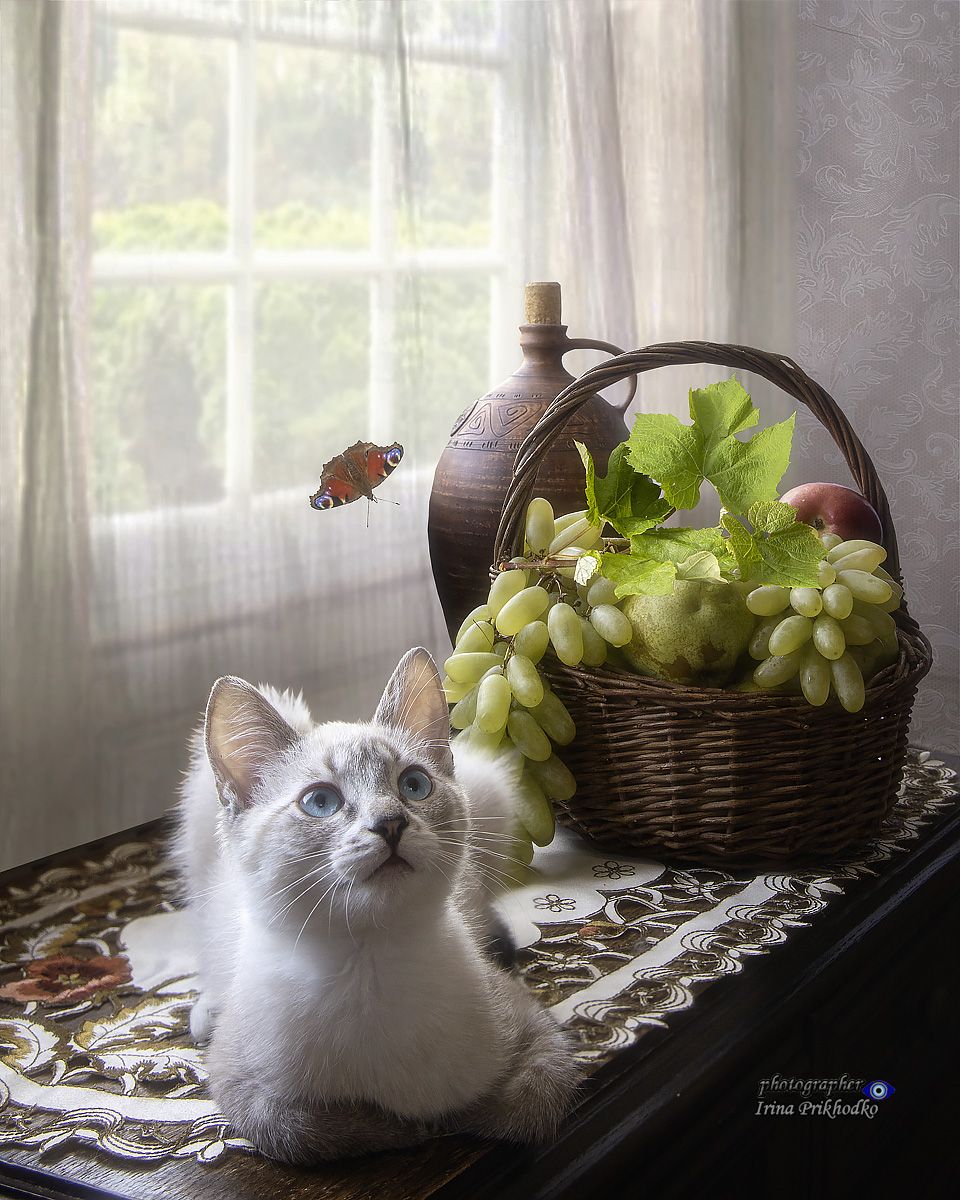 животныекотопортреткошкидомашние животныепитомцыкорзина фруктовинтерьер