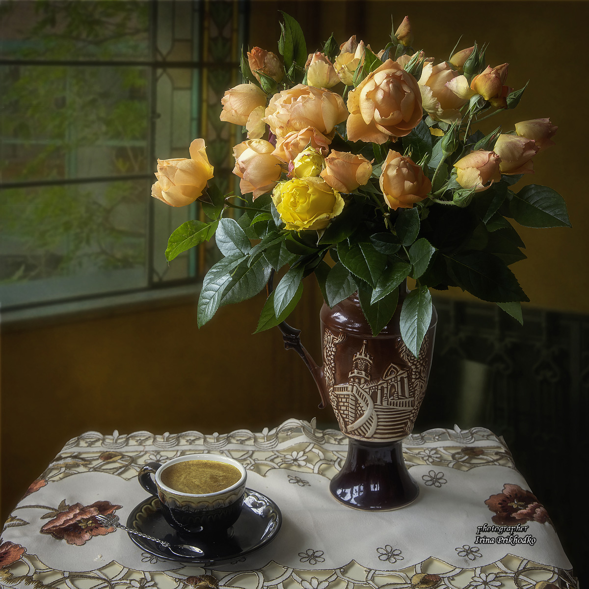 натюрморт, кофе, цветы, розы, букеты, Приходько Ирина
