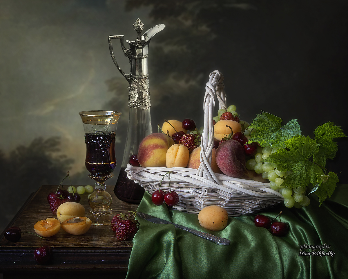 натюрморт, фрукты, еда, напитки, красное вино, Приходько Ирина