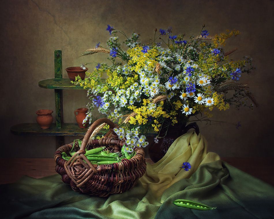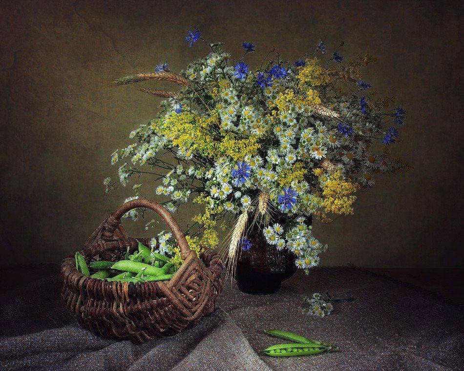 натюрмортстручки горохакорзинабукет полевых цветов