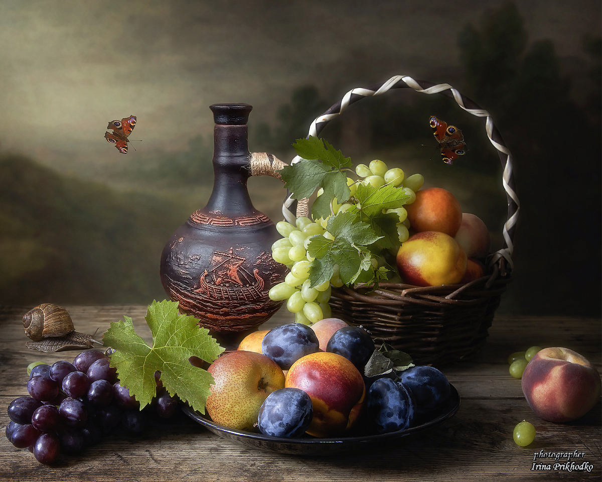 натюрморт, фрукты, бабочки, Приходько Ирина