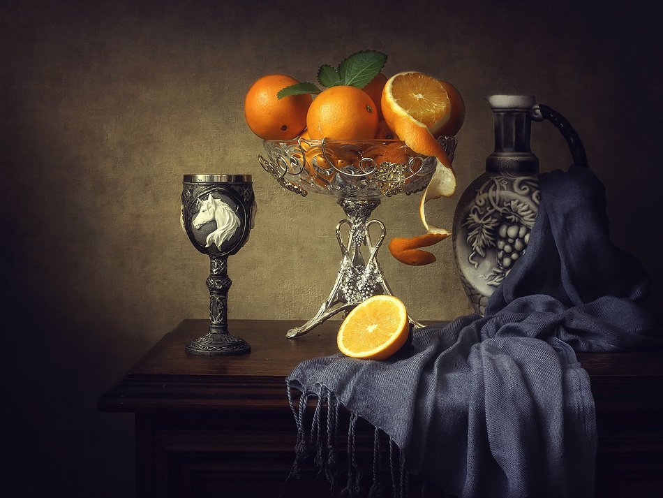 натюрморт, апельсины, ваза, кувшин, бокал вина, Ирина Приходько