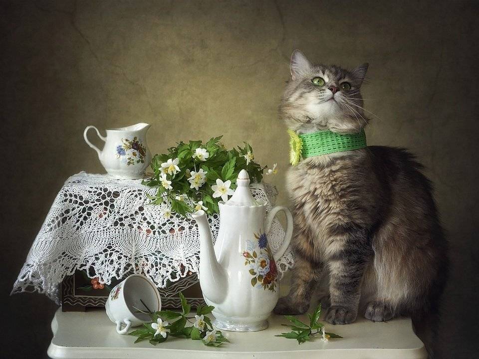 фотокошка Масянядомашние любимцыпостановочное фотовеснаанемоныпосуда
