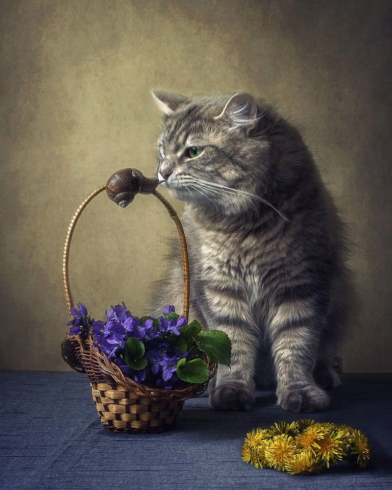 фотокошка Масянядомашние животныеулиткафиалкивеснакорзинкавенок из одуванчиков