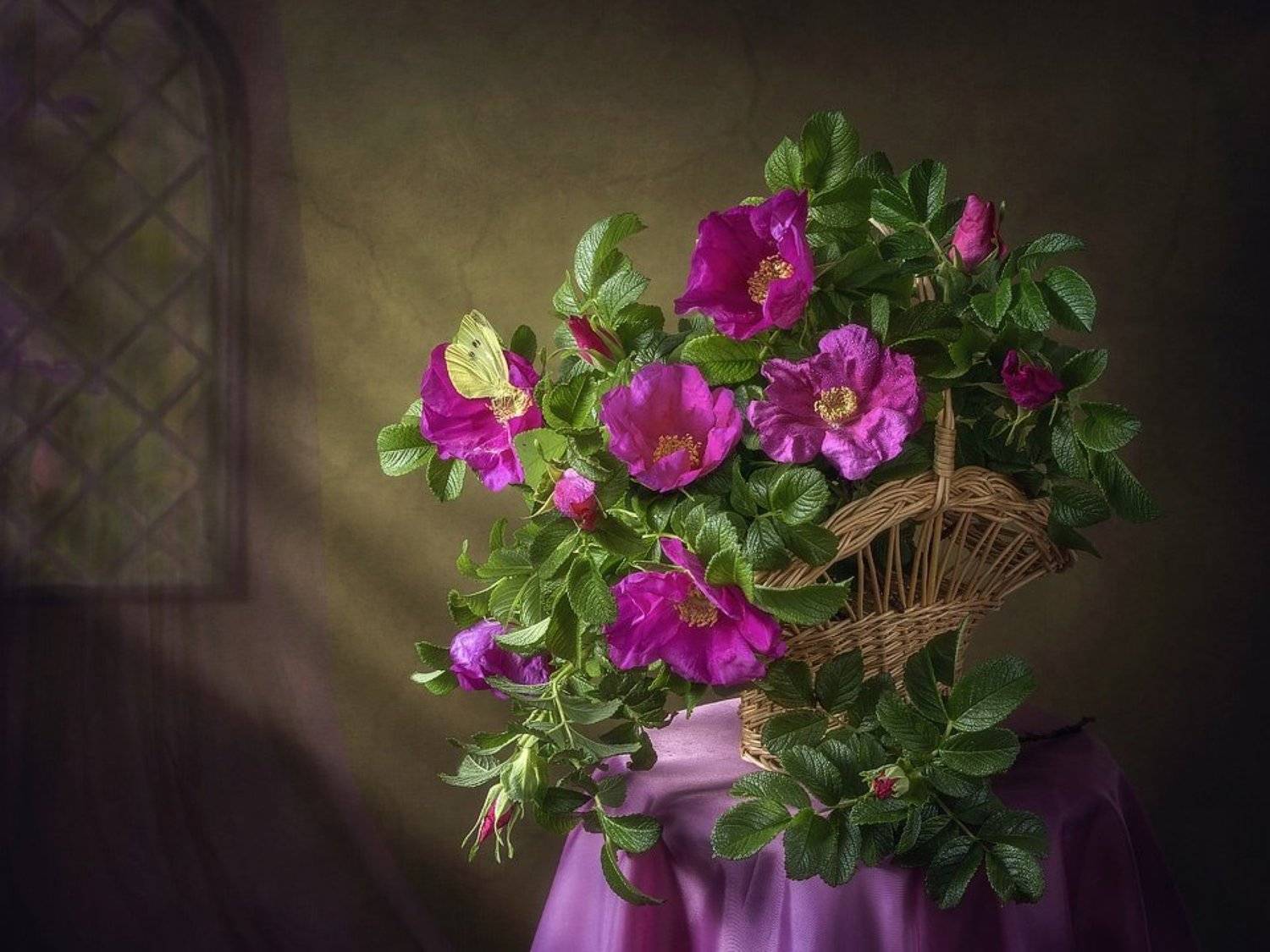 натюрмортшиповникначало летацветыбукетшиповникбабочка