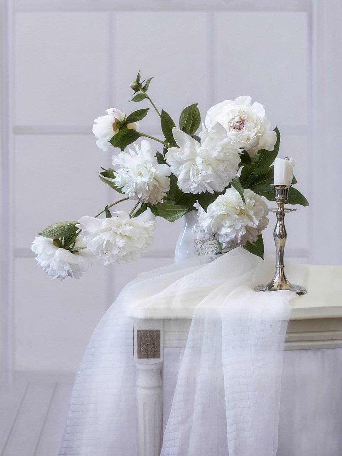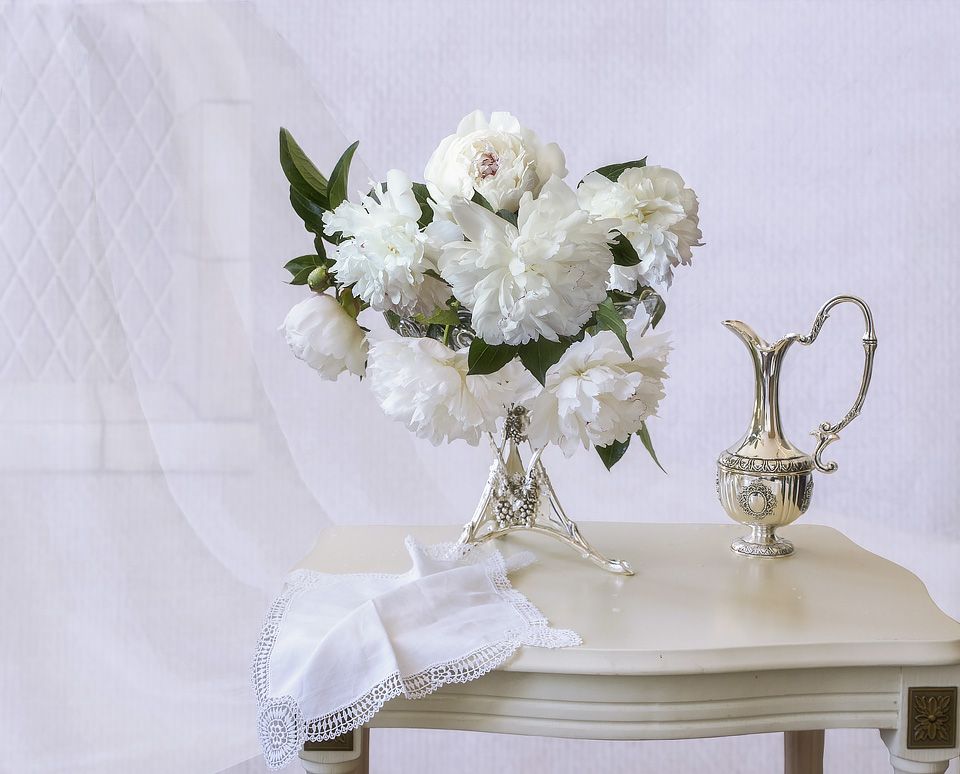 натюрмортлетоцветениецветыбелые пионыбукетбелый фон