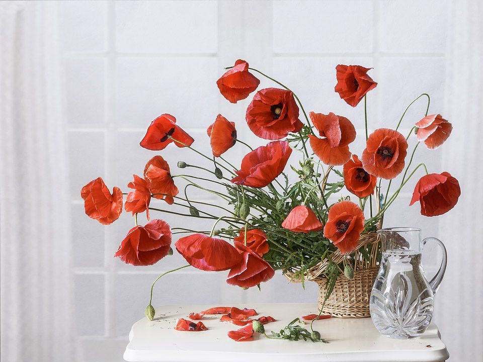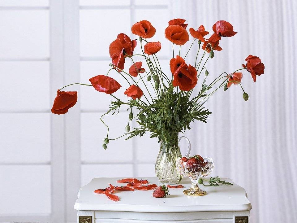 натюрмортлетобелый фонвысокий ключбукет красных маковклубника