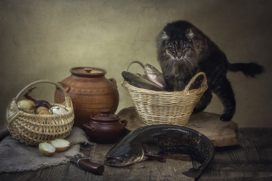 Саш, он уже старенький, не очень хочет сниматься, я его и не насилую. А тут начал карабкаться, я и воспользовалась моментом. Пару забавных кадров получилось. Он очень рыбу любит, наверное это и сыграло свою роль.