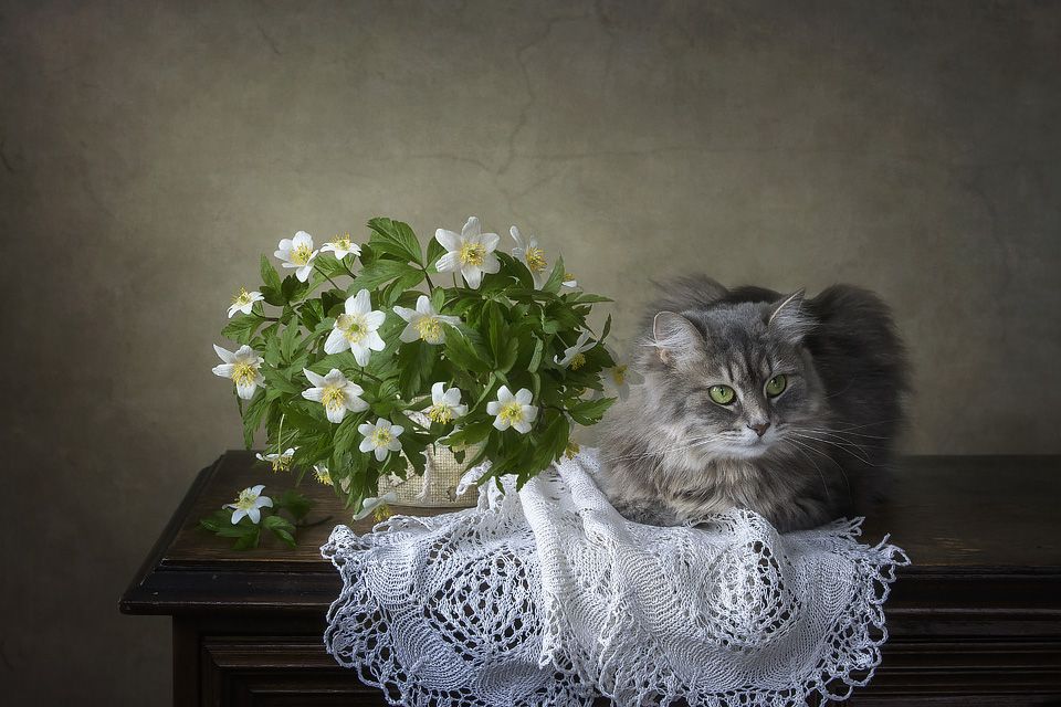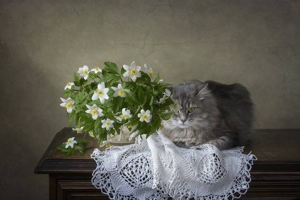 домашние животныекошкикошка Масяняцветочный натюрмортанемонывесна