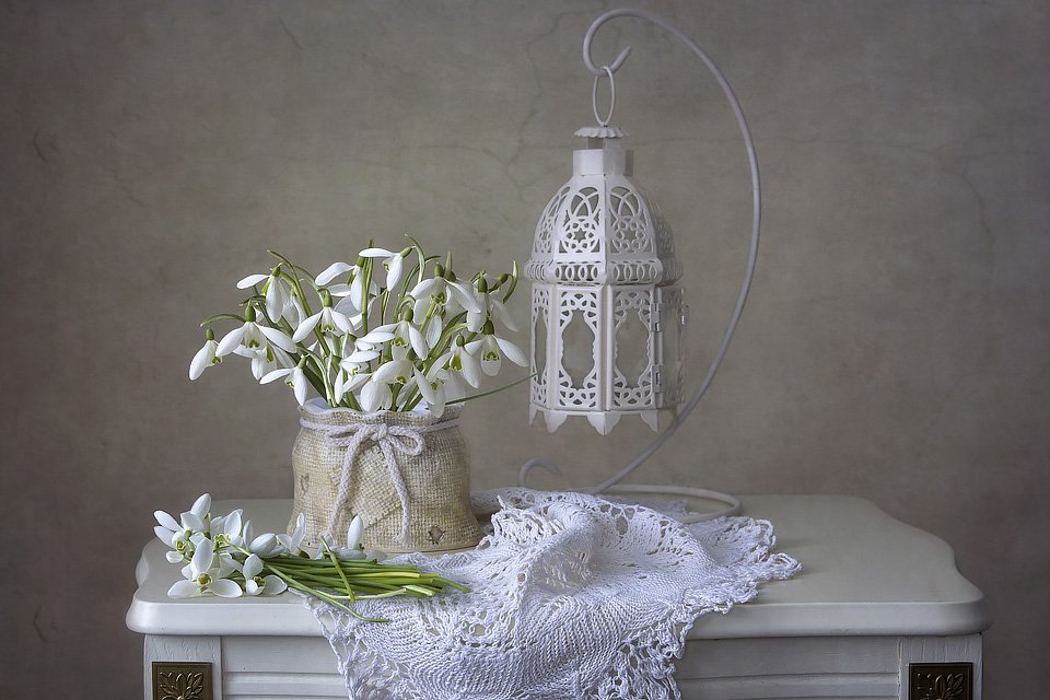 натюрморт, весна, подснежники, фонарь, кружева, Ирина Приходько
