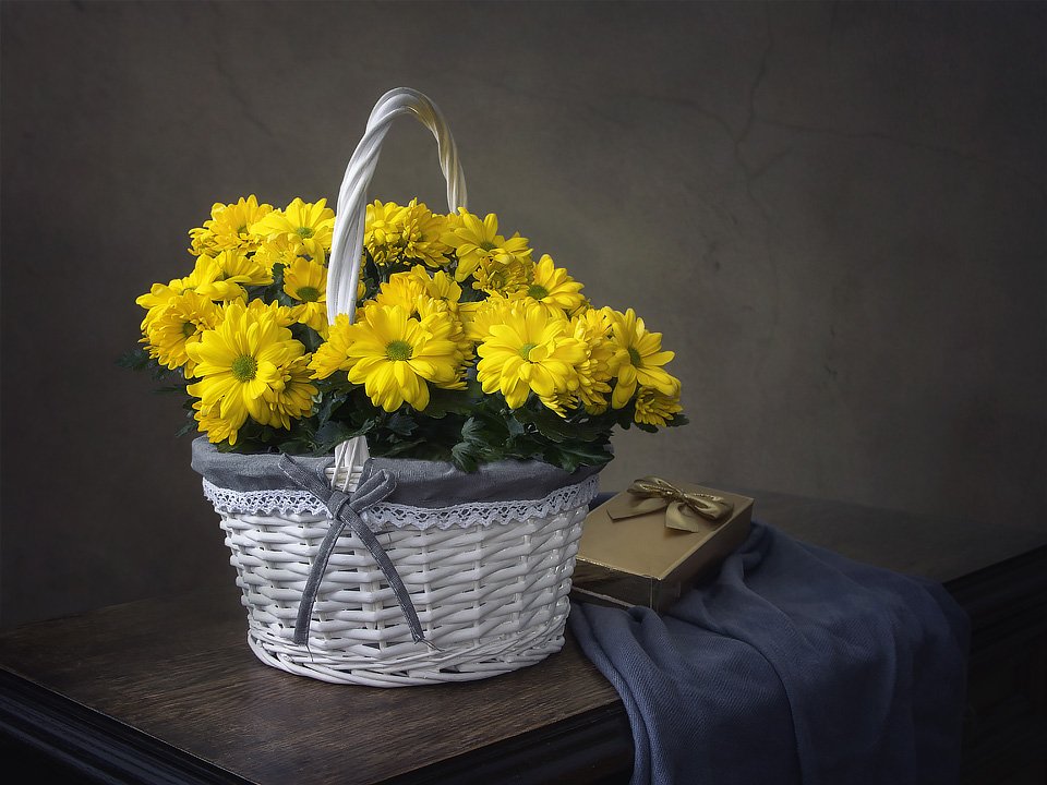 натюрморт, художественной фото, цветы, корзина, желтые хризантымы, Ирина Приходько