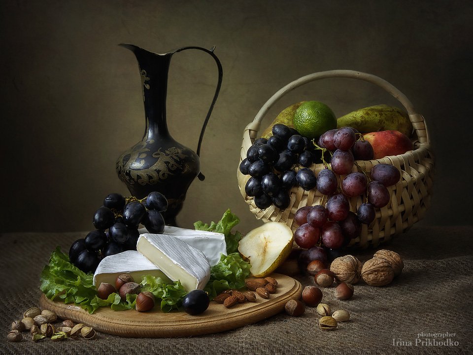 натюрморт, еда, фрукты, винтажный натюрморт, художественная фотография, сыры, камамбер, бри, Ирина Приходько