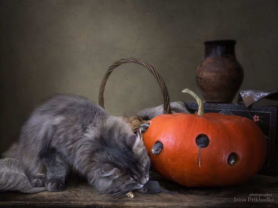 домашние животныекошка Масянятыквамышикотонатюрморт