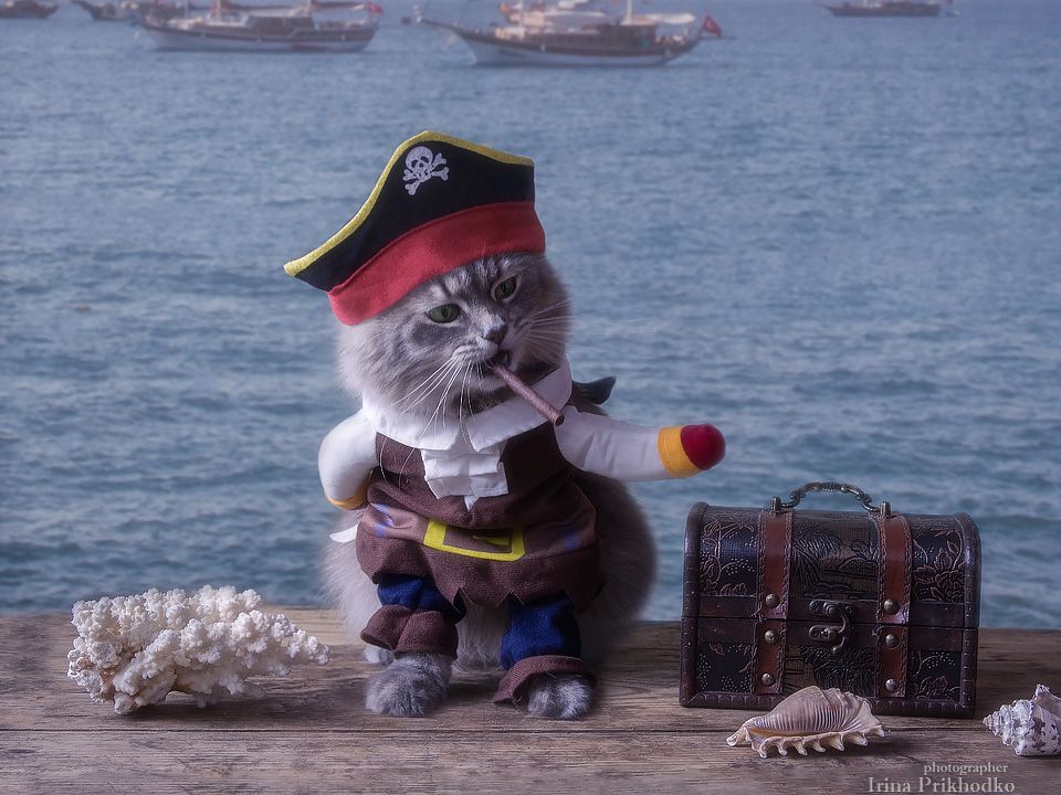 Когда-то выписала на Али костюмчик пирата для Масяни, сделала несколько кадров. Масня тогда еще не очень освоилась с переодевалками, не хотела сниматься в одежде. Сейчас решили повторить фотосессию. Не знаю, как вам, а мы с мужем насмеялись до слёз.У нас теперь Масяня бесплатно не работает: оплата труда - мясная палочка вкусняшка. За это лакомство Масяня согласна сниматься день и ночь.