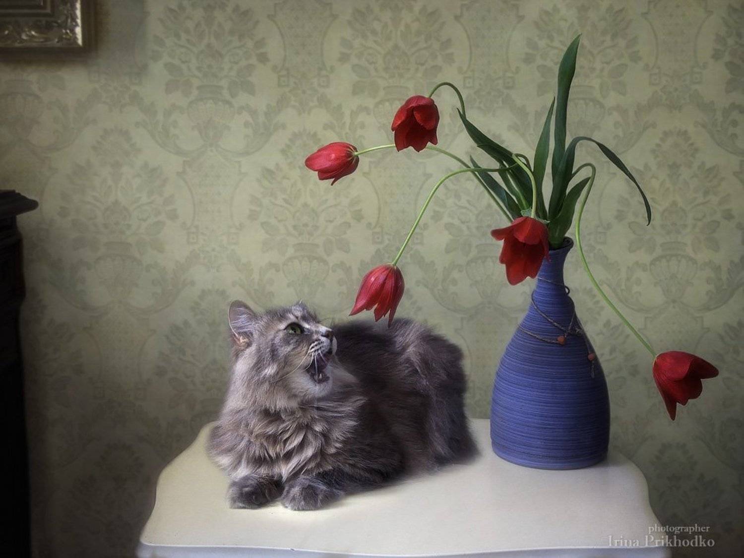 натюрморткотонатюрморткошка Масянядомашние животныецветочный натюрморттюльпаны