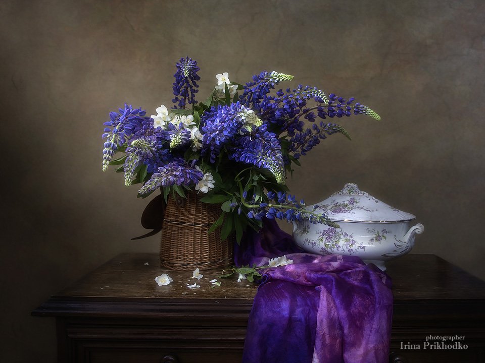 натюрморт, цветочный натюрморт, винтажный натюрморт, букет, люпин, кузнецовский фарфор, Ирина Приходько