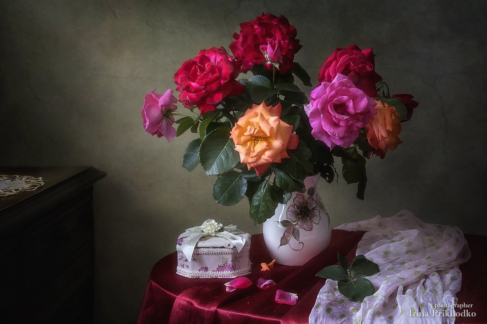 натюрморт, лето, садовые розы, букет, интерьер, ретро, Ирина Приходько