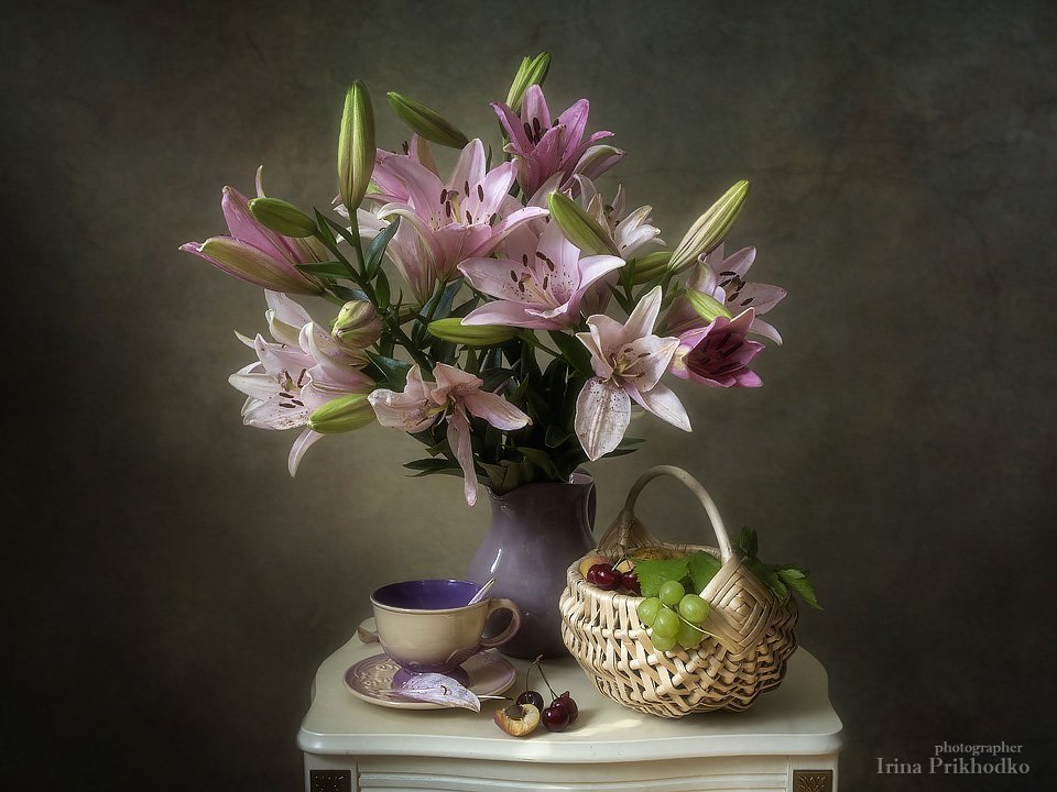 натюрморт, цветы, лето, фрукты, букет, лилии, ретро, винтажный, арт фотография, Ирина Приходько