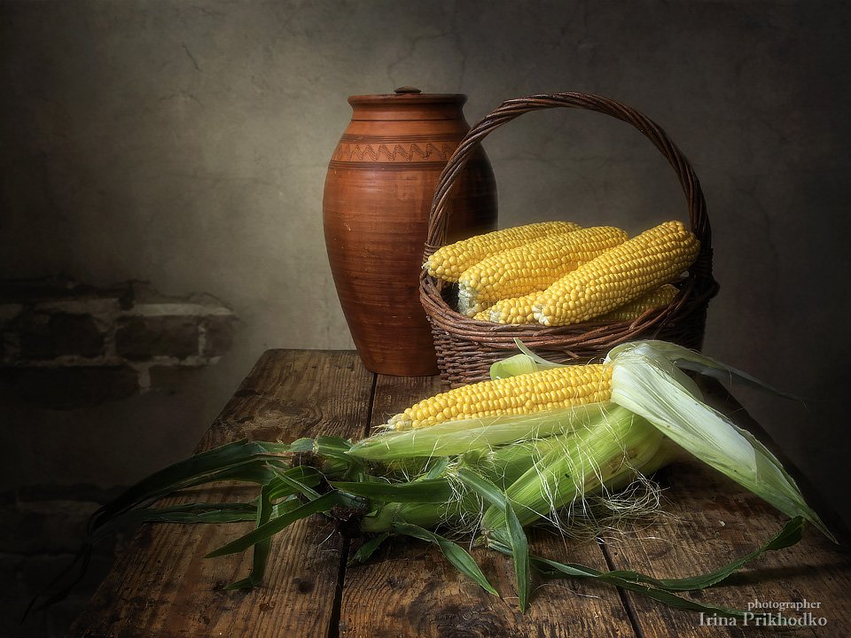 натюрморт, урожай, кукуруза, початки, винтажный натюрморт, деревенский стиль, Ирина Приходько