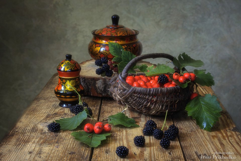 натюрморт, деревенский стиль, хохлома, ежевика, боярышник, август, Ирина Приходько