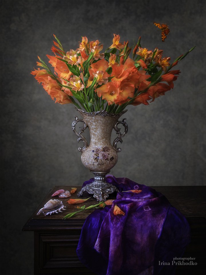 натюрморт, винтажный, цветочный, гладиолусы, альстромерии, букет, , Ирина Приходько