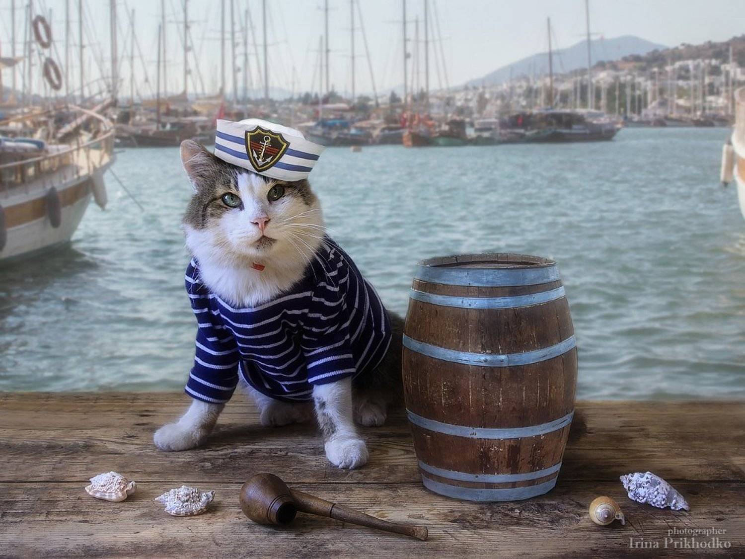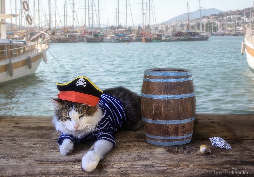 Да, Лиза, нелёгкая задача! Лёвушка уже больше трех лет беспризорничает, его любит, жалеет, кормит весь наш двор. Он такой тусовщик и очень ласковый (хотя всех окрестных котов заставил ходить строем и отдавать ему честь), что никто его не обижает. Но когда я стала приглашать его в гости и кормить правильной и вкусной едой (а главное - регулярно), он стал с охотой приходить. А в начале сентября я решила попробовать его снимать. Оказалось, что он с удовольствием позирует и вполне лоялен к одёжкам. Самое главное - головные уборы достаточно спокойно разрешает надевать. Мася шапки не очень любила, нужно было долго уговаривать