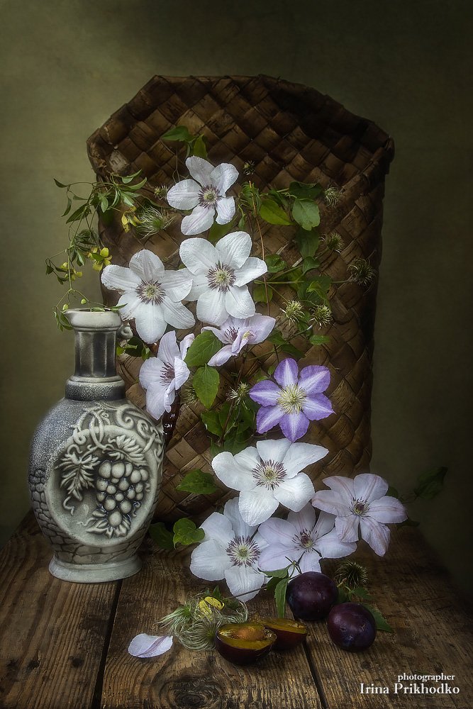 натюрморт, ретро, винтажный стиль, клематис, цветочный, , Ирина Приходько