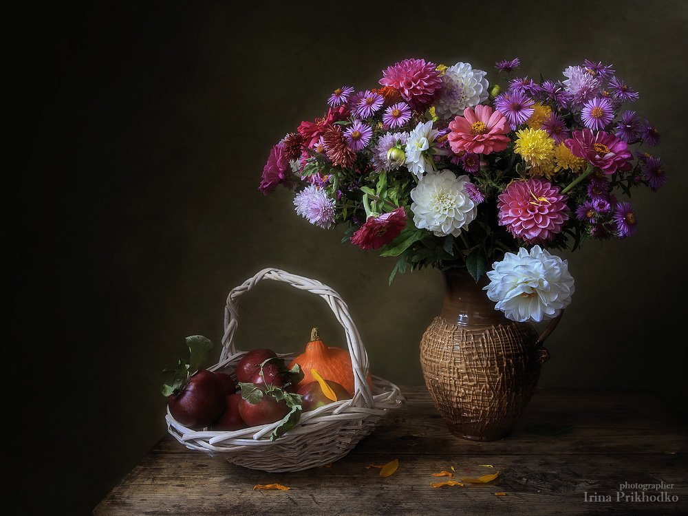 натюрморт,осень, ретро, букет, яблоки, Ирина Приходько