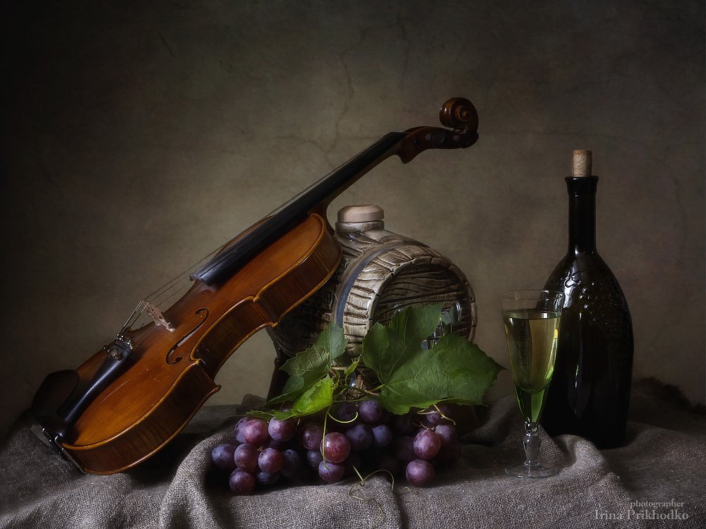 натюрморт, винтажный, ретро, погребок, музыкальные инструменты, ретро,скрипка, вино, бочонок, Ирина Приходько